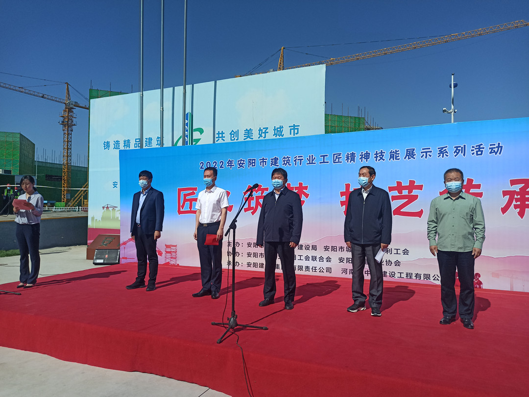 5月16日,由安陽市住建局、安陽市城建交通水利工會(huì)共同舉辦的“匠心筑夢 技藝傳承”2022年度安陽市建筑行業(yè)工匠技能展示活動(dòng)在安陽師范學(xué)院教學(xué)實(shí)驗(yàn)綜合樓項(xiàng)目工地舉行。集團(tuán)公司常務(wù)副總楊金貴、副總經(jīng)理王福民、王超帶隊(duì)參加了活動(dòng)。